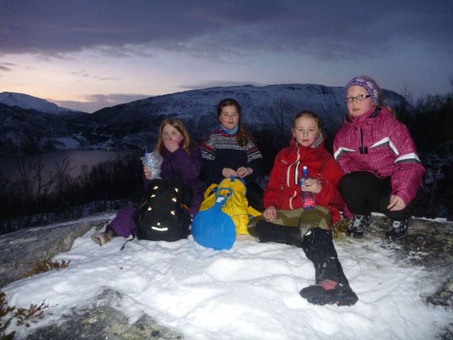 Vi var 4 barn og tre voksne som fant ut at vi skulle ta en tur til Vakkerstadlia på denne fine dagen, søndag 7. januar. Alle startet med friskt mot, men etter 100 meter var de yngste ”ferdig” med turen.
