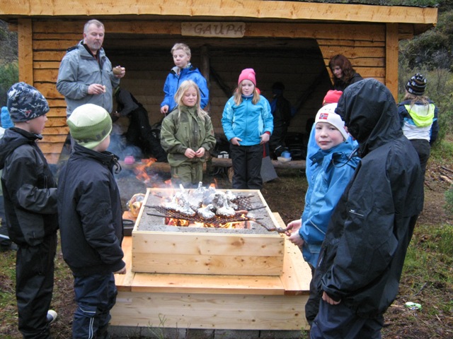 Godvilje fra grunneiere gjorde sitt til at vi fikk tømmer og tillatelse til å sette opp gapahuken her. Dette er et samarbeid med Grov Skole. Uteskolen (1-4. klasse) vil bruke gapahuken som base for sine aktiviteter. Elevene har vært med både i planleggingsfasen og i selve byggingen. Derfor var det også naturlig at elevene fikk velge navn. Den skal heite «Gaupa». Morten Martinsen som var utplassert på skolen i forbindelse med utdanningen sin, har laget det flotte skiltet som henger der.